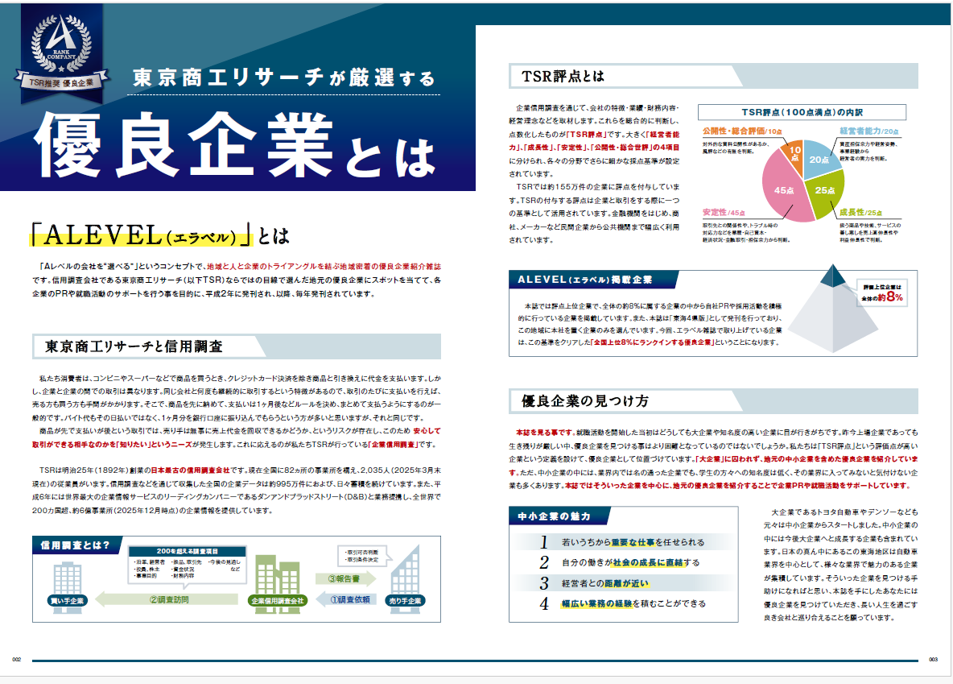 「ALevel(エラベル)」は「Aレベルの会社を“選べる”」というコンセプトで、地域と人と企業のトライアングルを結ぶ地域密着の優良企業紹介雑誌です。